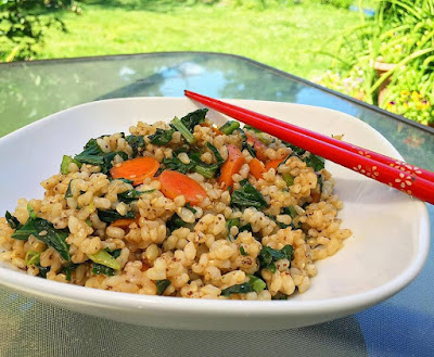 Carrot Ginger Sauce on Sesame Tofu, Brown Rice, and Veggies